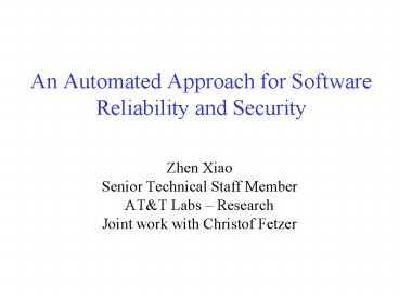 An Automated Approach for Software Reliability and Security - PowerPoint PPT Presentation