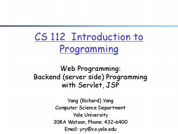 <Notice: Removed> CS 112 Introduction to Programming PowerPoint PPT Presentation
