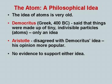 The Atom: A Philosophical Idea PowerPoint PPT Presentation