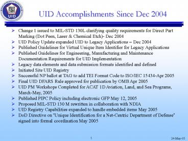 <Notice: Removed> UID Accomplishments Since Dec 2004 PowerPoint PPT Presentation
