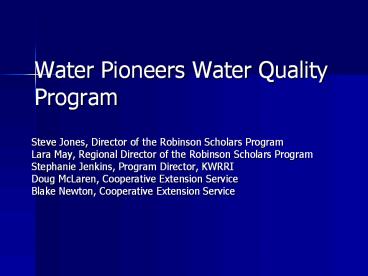 <Notice: Removed> Water Pioneers Water Quality Program PowerPoint PPT Presentation