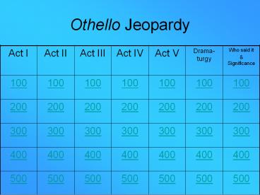 Act I Act II Act III Act IV Act V Drama-turgy Who said it Significance