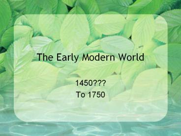 Title: The Early Modern World