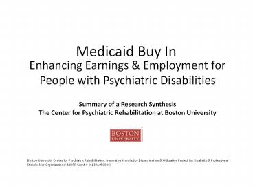 People with Psychiatric Disabilities. - Conducted by Center for Psychiatric