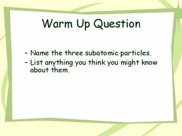 Warm Up Question PowerPoint PPT Presentation