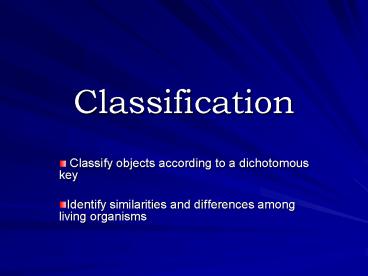 - Classify objects according to a dichotomous key