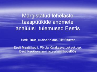 märgistamise alusel saadud andmeid eeskätt Põlula