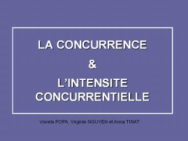 1LA CONCURRENCE LINTENSITE CONCURRENTIELLE