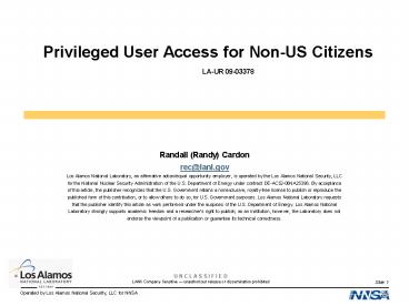 Privileged User Access for Non-US Citizens LA-UR