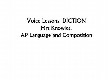 <Notice: Removed> Voice Lessons: DICTION Mrs Knowles: AP Language and Composition PowerPoint PPT Presentation