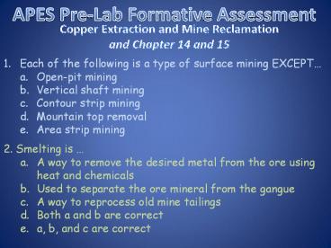 factor in the mining of lower grade ores EXCEPT - a. Increased cost of mining