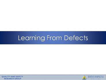tool to learn from defects in patient care. Jt