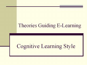Theories Guiding E-Learning Cognitive Learning Style PowerPoint PPT Presentation