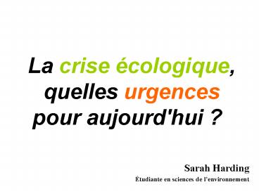 1La crise écologique, quelles urgences pour