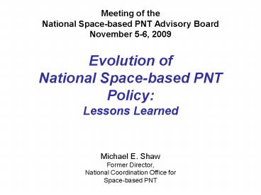 <Notice: Removed> Evolution of National Space-based PNT Policy: Lessons Learned PowerPoint PPT Presentation