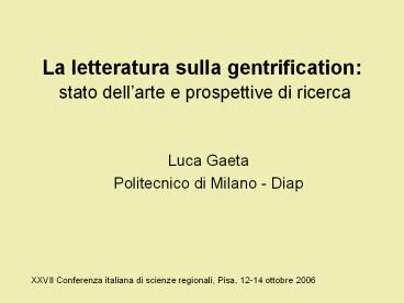 <Notice: Removed> La letteratura sulla gentrification: stato dell PowerPoint PPT Presentation