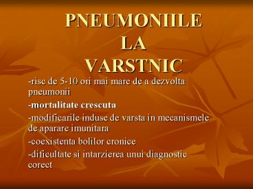 PNEUMONIILE LA VARSTNIC PowerPoint PPT Presentation