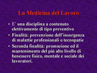 Title: La Medicina del Lavoro