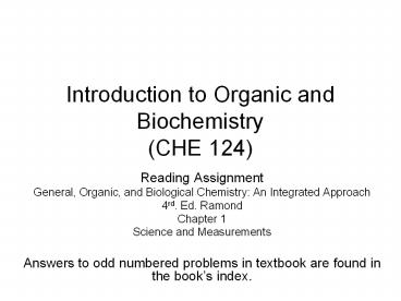 Title: Introduction to Organic and Biochemistry (CHE 124)