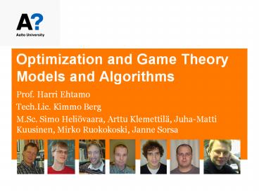 <Notice: Removed> Optimization and Game Theory Models and Algorithms PowerPoint PPT Presentation