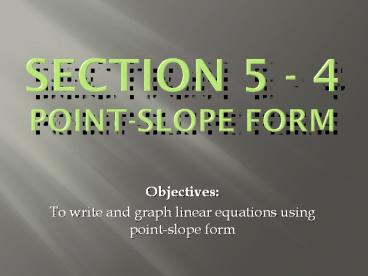 Title: Section 5 - 4 Point-Slope Form