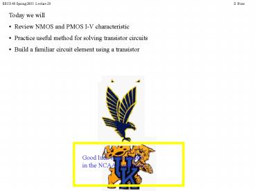 - Review NMOS and PMOS I-V characteristic