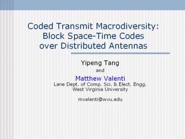 Title: Coded Transmit Macrodiversity: Block Space-Time Codes over Distributed Antennas