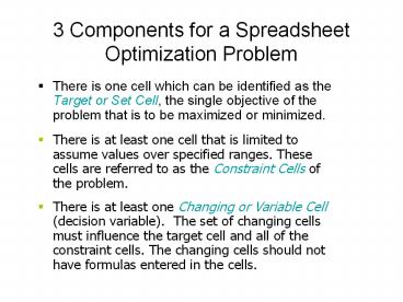 <Notice: Removed> 3 Components for a Spreadsheet Optimization Problem PowerPoint PPT Presentation