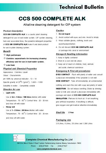 Technical Bulletin Alkaline cleaning detergent for CIP system Caution 1. – PowerPoint PPT presentation