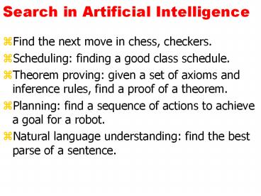 Title: Search in Artificial Intelligence