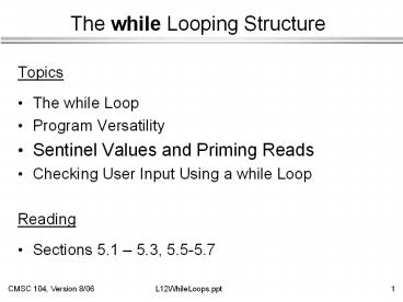 while loop, the for loop, and the do-while loop. - Almost all programs use repetition!
