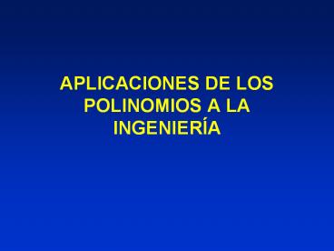 APLICACIONES DE LOS POLINOMIOS A LA INGENIER PowerPoint PPT Presentation