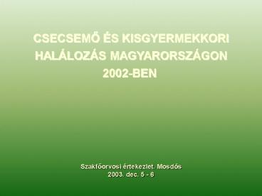 1CSECSEMO ÉS KISGYERMEKKORI HALÁLOZÁS