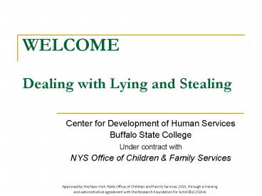 Title: WELCOME Dealing with Lying and Stealing