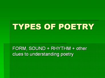 TYPES OF POETRY PowerPoint PPT Presentation