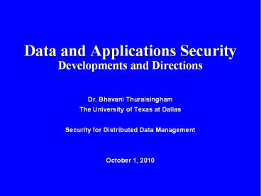 <Notice: Removed> Data and Applications Security Developments and Directions PowerPoint PPT Presentation