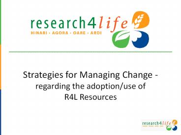 Title: Strategies%20for%20Managing%20Change%20-%20regarding%20the%20adoption/use%20of%20R4L%20Resources