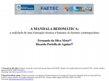 Fernando da Silva Mota1 Ricardo Portella de