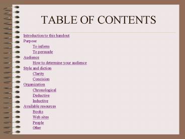 <Notice: Removed> TABLE OF CONTENTS PowerPoint PPT Presentation