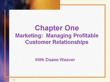 Title: Chapter One Marketing: Managing Profitable Customer Relationships