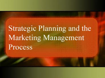 1Strategic Planning and the Marketing Management