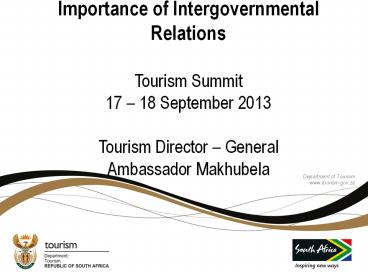 Title: Importance of Intergovernmental Relations Tourism Summit 17