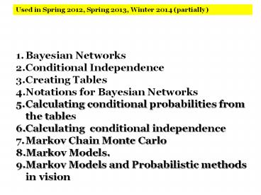 - Markov Models and Probabilistic methods in vision