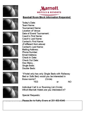 Baseball Room Block Information Requested: PowerPoint PPT Presentation