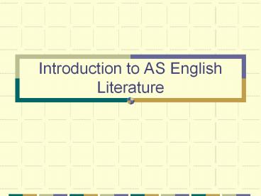 <Notice: Removed> Introduction to AS English Literature PowerPoint PPT Presentation