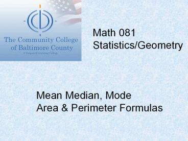 <Notice: Removed> Math 081 Statistics/Geometry Mean Median, Mode Area PowerPoint PPT Presentation