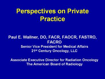 - Paul E. Wallner, DO, FACR, FAOCR, FASTRO,