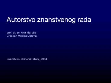 1Autorstvo znanstvenog rada prof. dr. sc. Ana