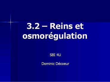 13.2 Reins et osmorégulation