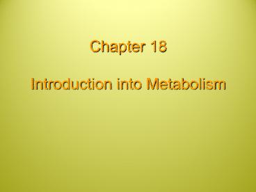 Chapter 18 Introduction into Metabolism PowerPoint PPT Presentation